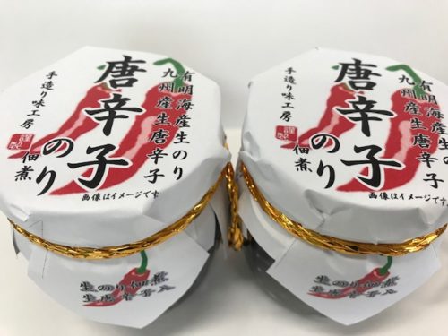 加工食品部門第2位獲得の『ゆず胡椒のり』に引き続き、『唐辛子のり』が完成、新発売となりました。